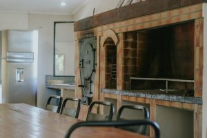 Amplio fogón con estaquero para disfrutar. Complementan los dos parrilleros y el horno a leña.